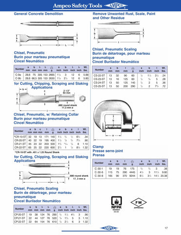 Cincel Burilador Neumatico 1-3/4" Marca AMPCO Modelo CP-21-ST