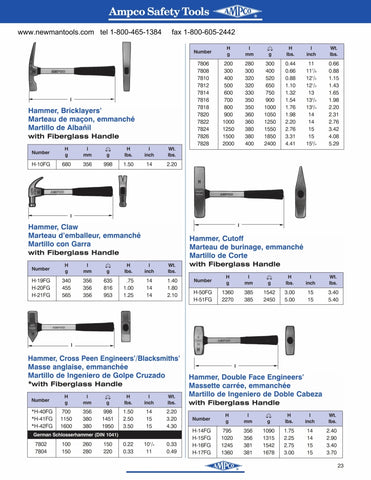 Martillo Bola de Herrero de 2.75 Libras, 14" de Largo Total Marca AMPCO Modelo H-16FG