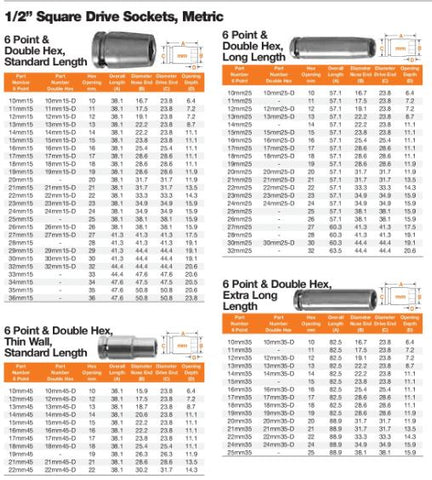 SCKT 1/2" SQ DR 11MM DBL HEX 38.1MM OAL (12)