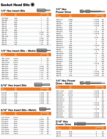 BIT 1/4 HEX INS 1/4" HEX 1-5/16" 33MM (1)