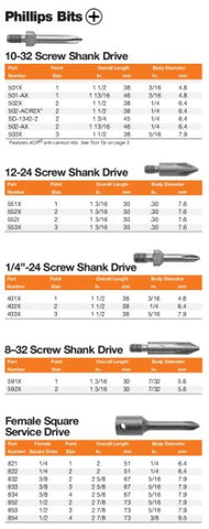 BIT 12-24 MALE THD DR #3 PH 1-3/16" 30MM (25)