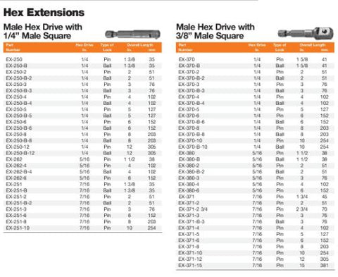 EXT 1/4 MALE HEX DRV 1/4 MALE SQ 3" LG(1)