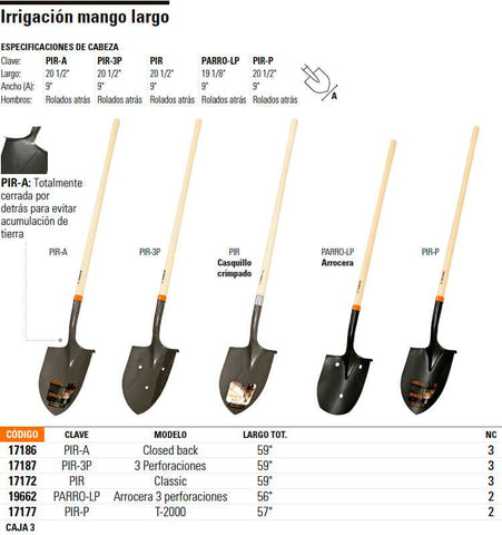 Pala irrigación, tipo americano, Closed back, mango largo Clave-PIR-A